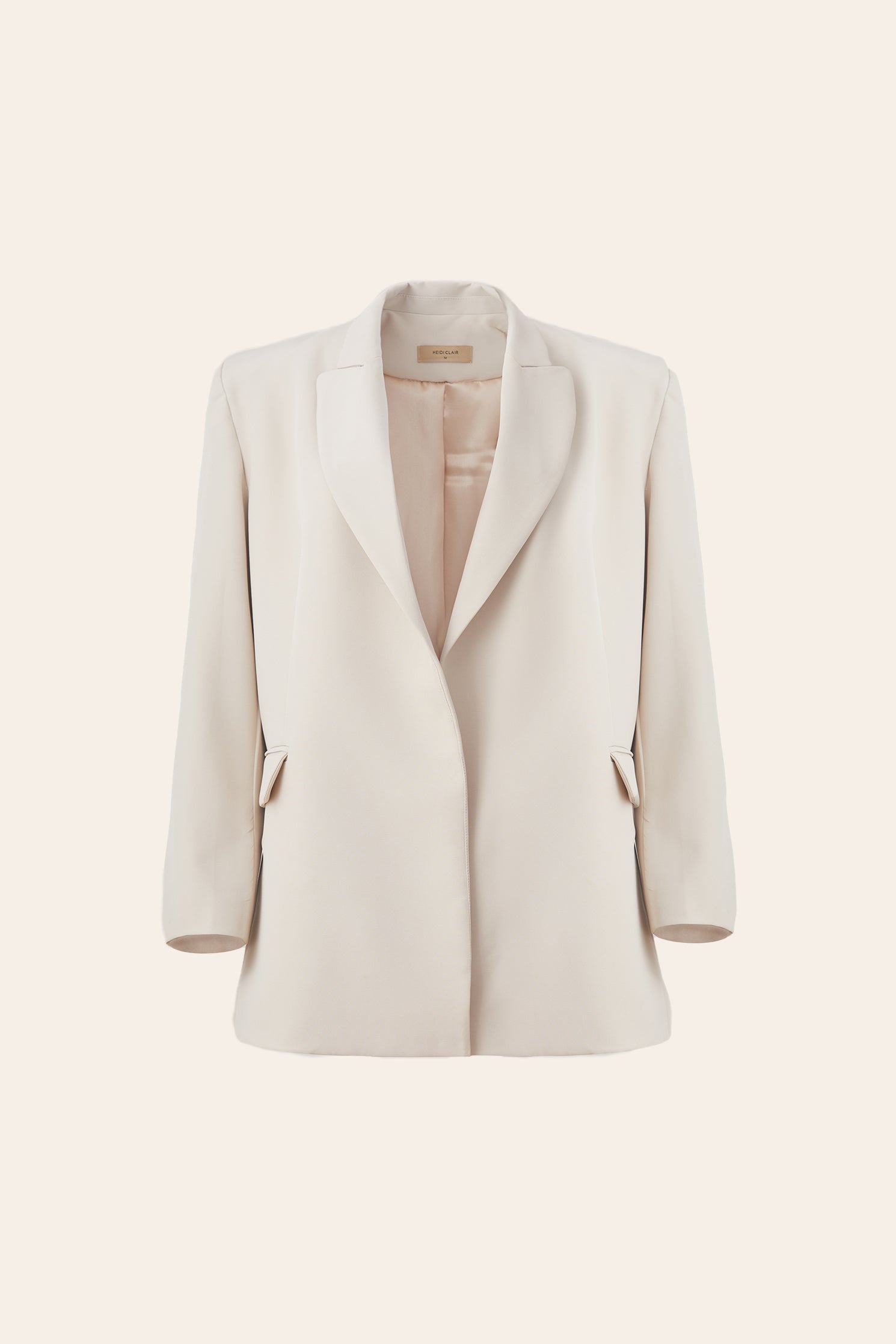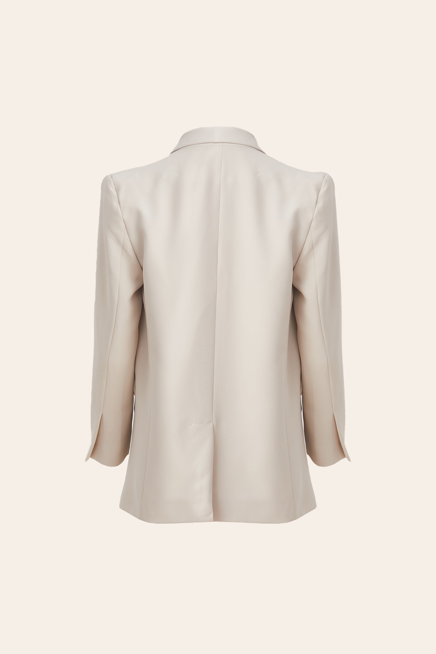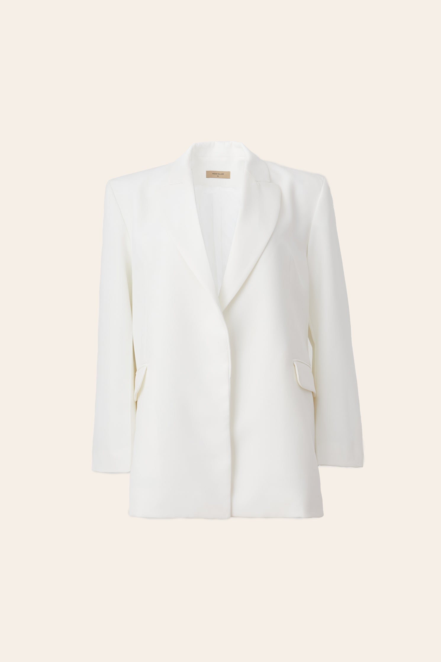 Blazer manga larga en creppe con hombreras y fit recto. Tiene botón diferenciado en niquel y largo regular a la segunda cadera. Interior forrado