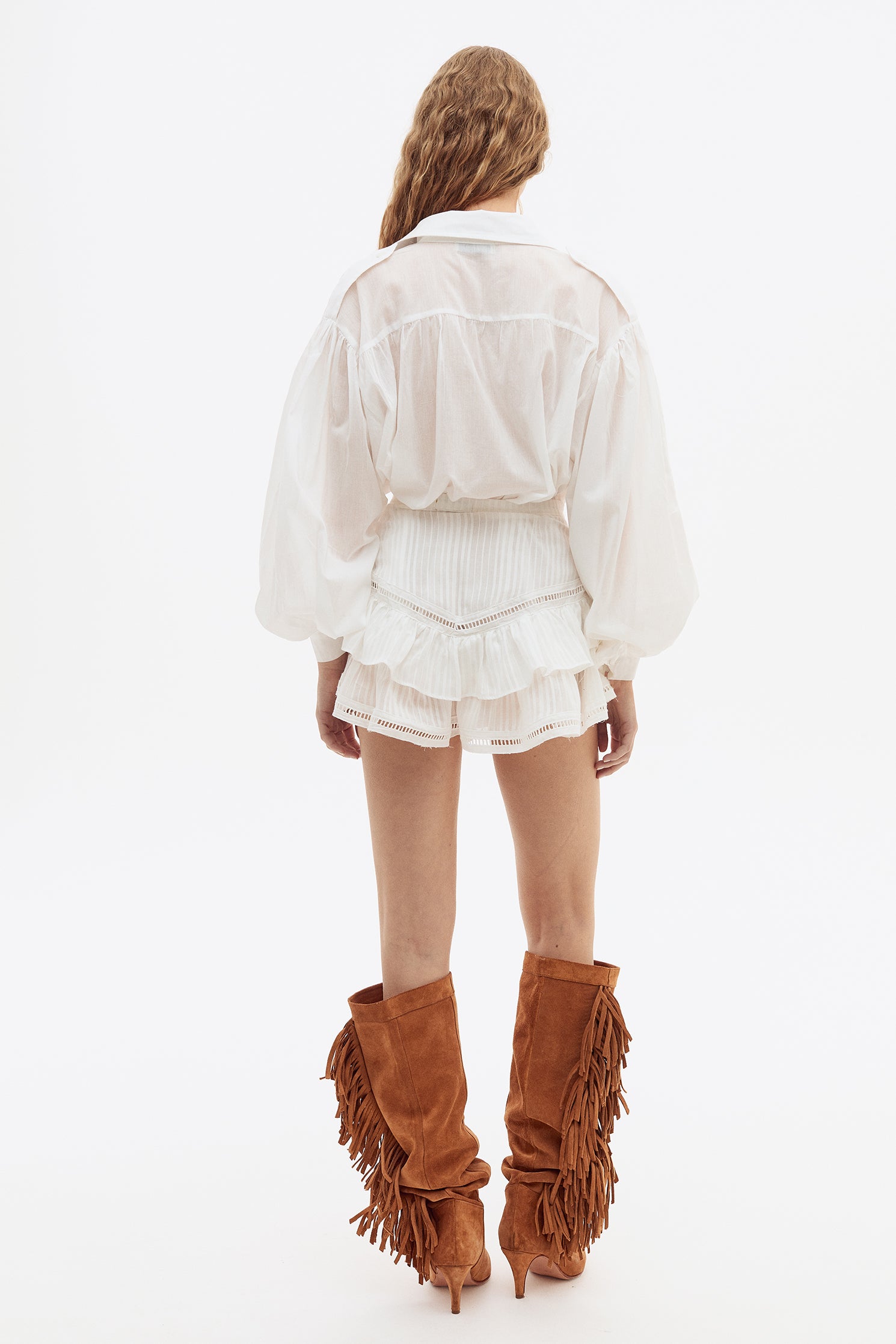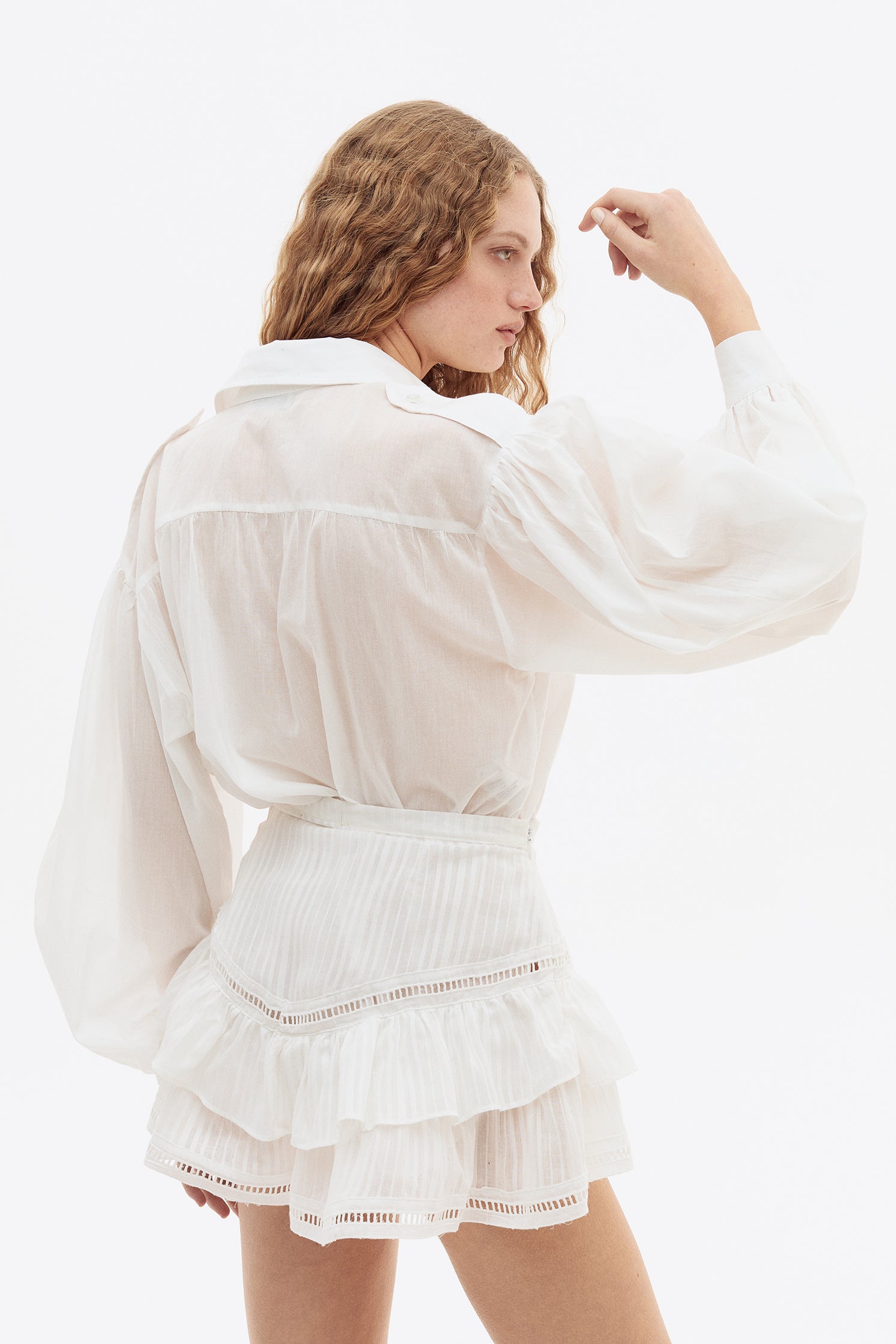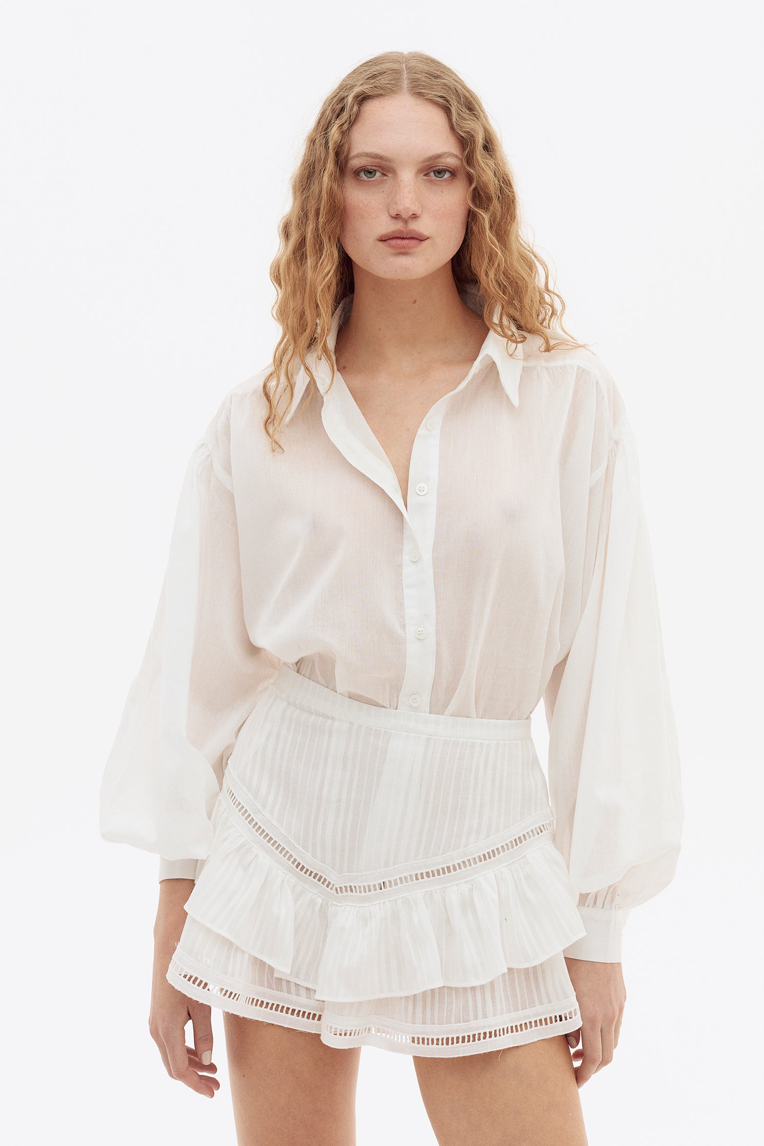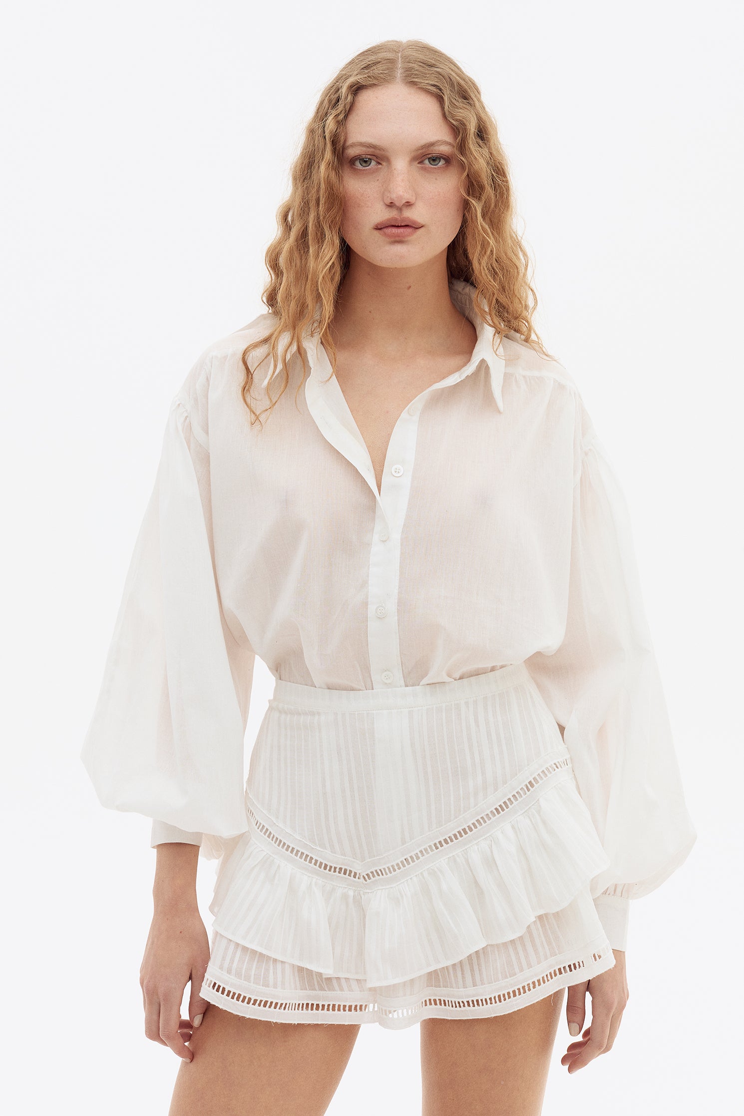 Blusa en voile de algodón, con BOTONES en delantero. Tiene mangas largas con volúmen TIPO BALLOON