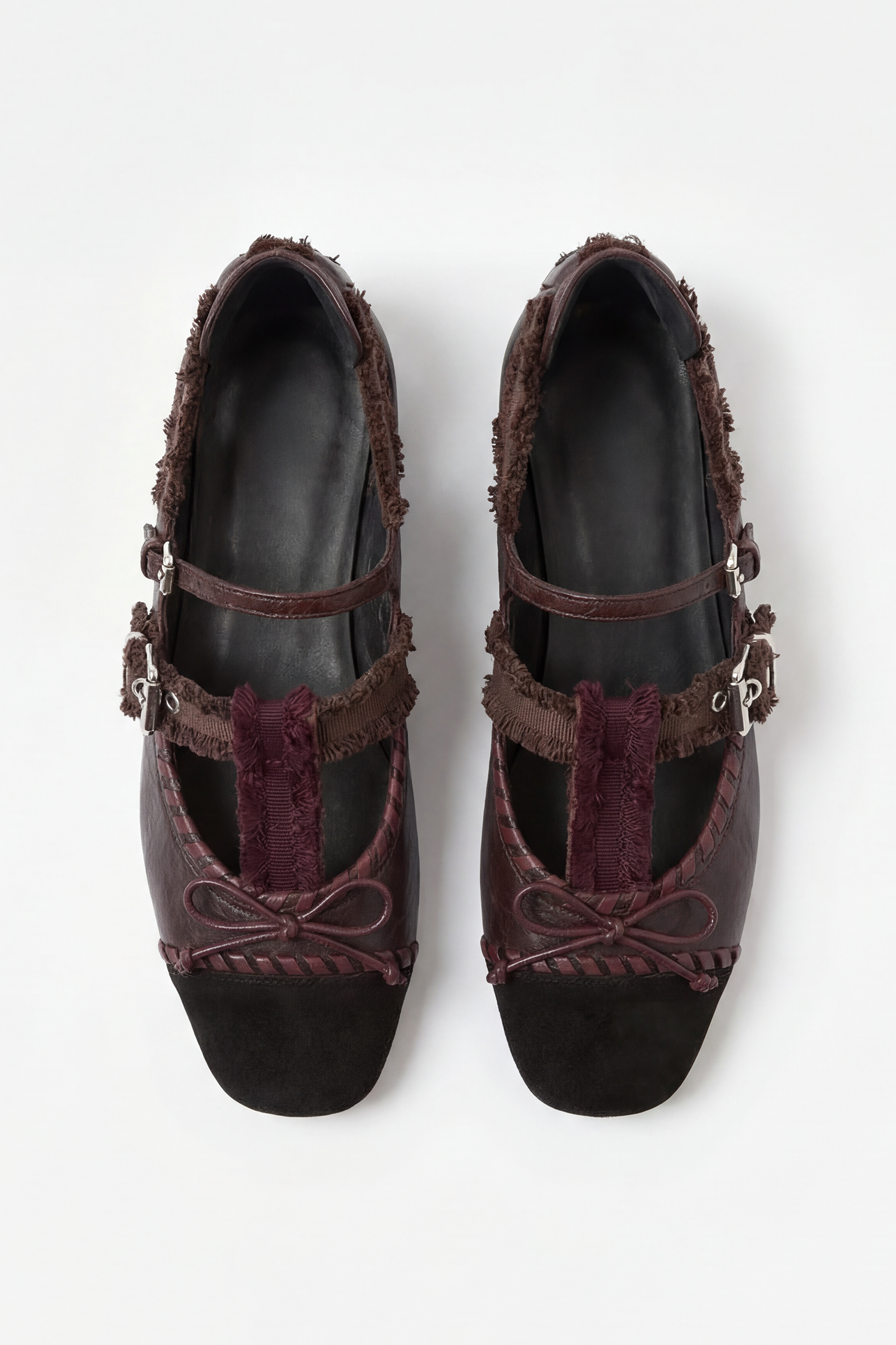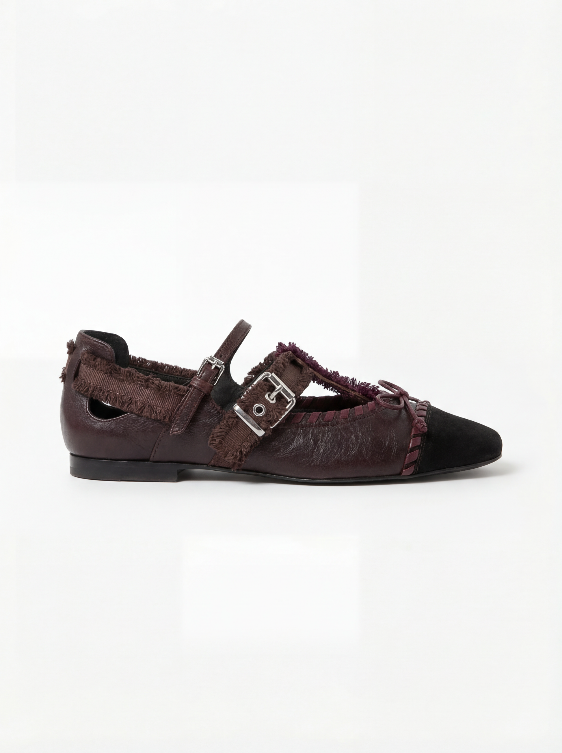 Estas chatas combinan un diseño clásico con un toque contemporáneo y artesanal. Confeccionadas en cuero en tonos marrón profundo y negro, presentan una silueta delicada de punta redondeada que aporta elegancia y versatilidad para el uso diario