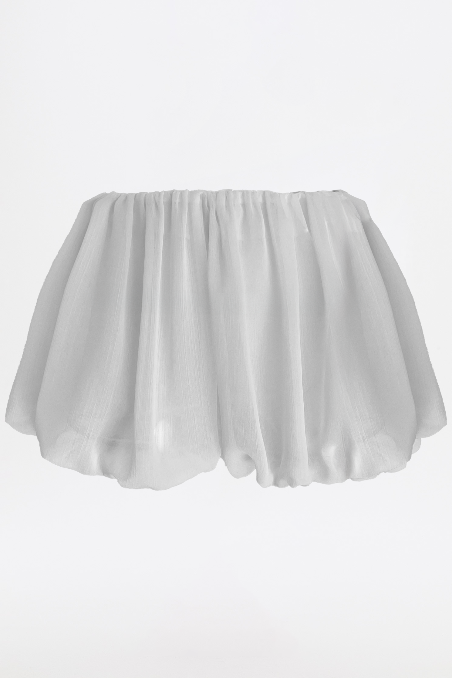Short balloon con amplio vuelo en todo su contorno, realizado en seda. Tiene elástico en cintura y forrería. Su largo es a la segunda cadera y tiene fit suelto.