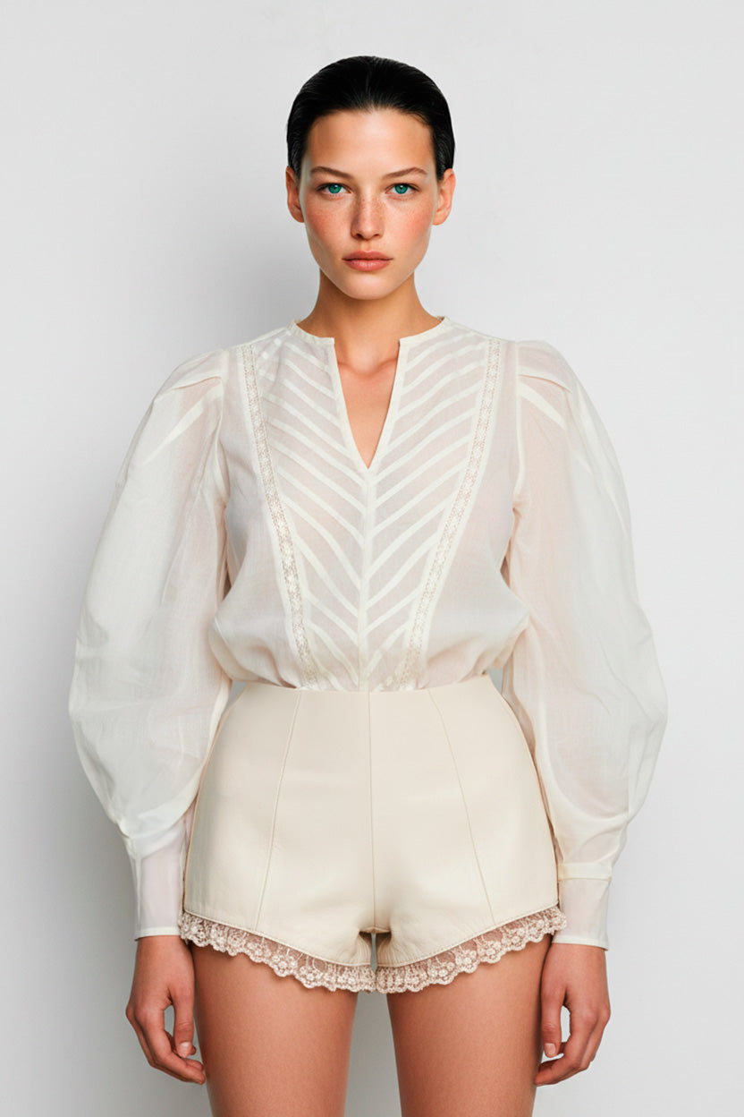 Short tiro medio en cuero ovino 100%, largo regular a la segunda cadera, con galón a contratono en ruedo y cierre en lateral.