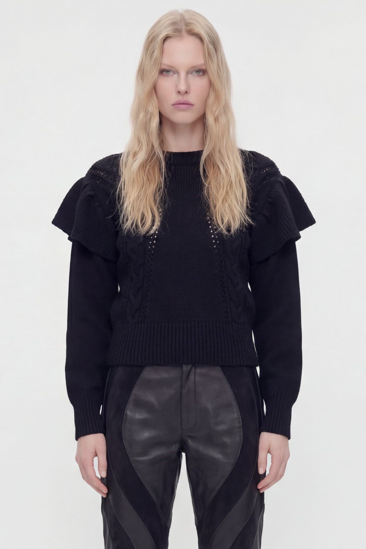 Sweater combinado con lúrex en su hilado que le aporta brillo a la prenda.