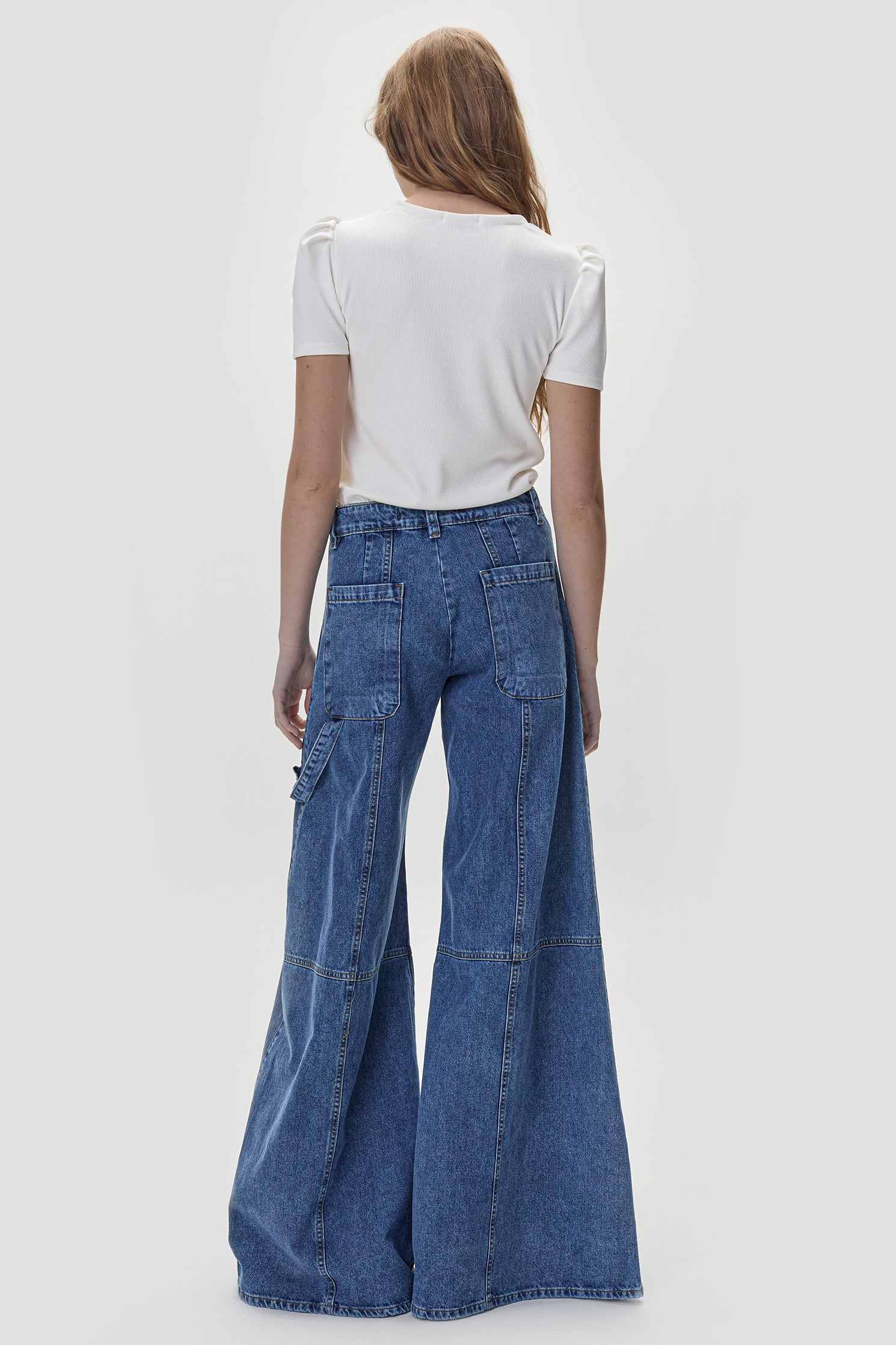 Tiene mangas con volúmen, fit al cuerpo y largo regular a la primer cadera.