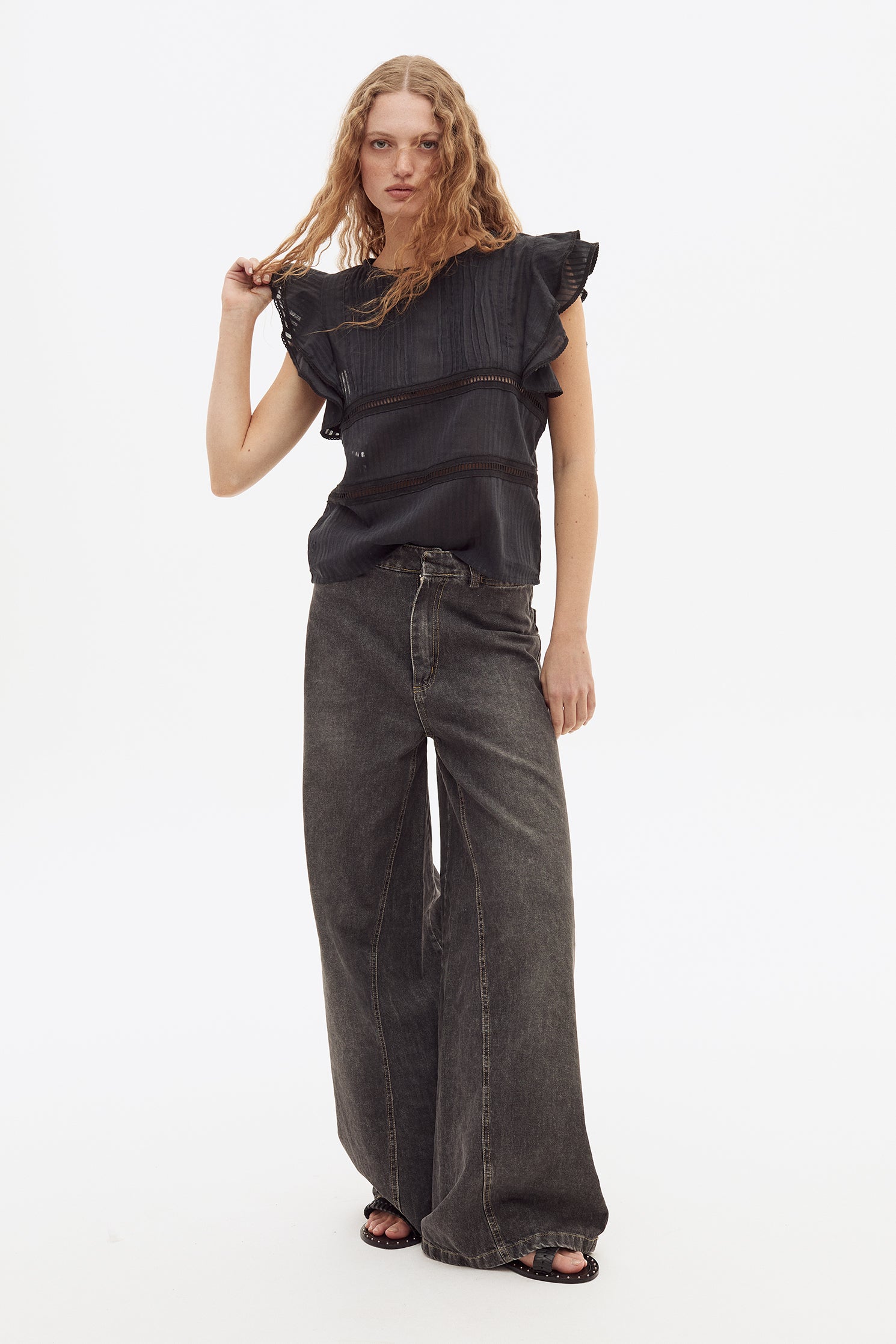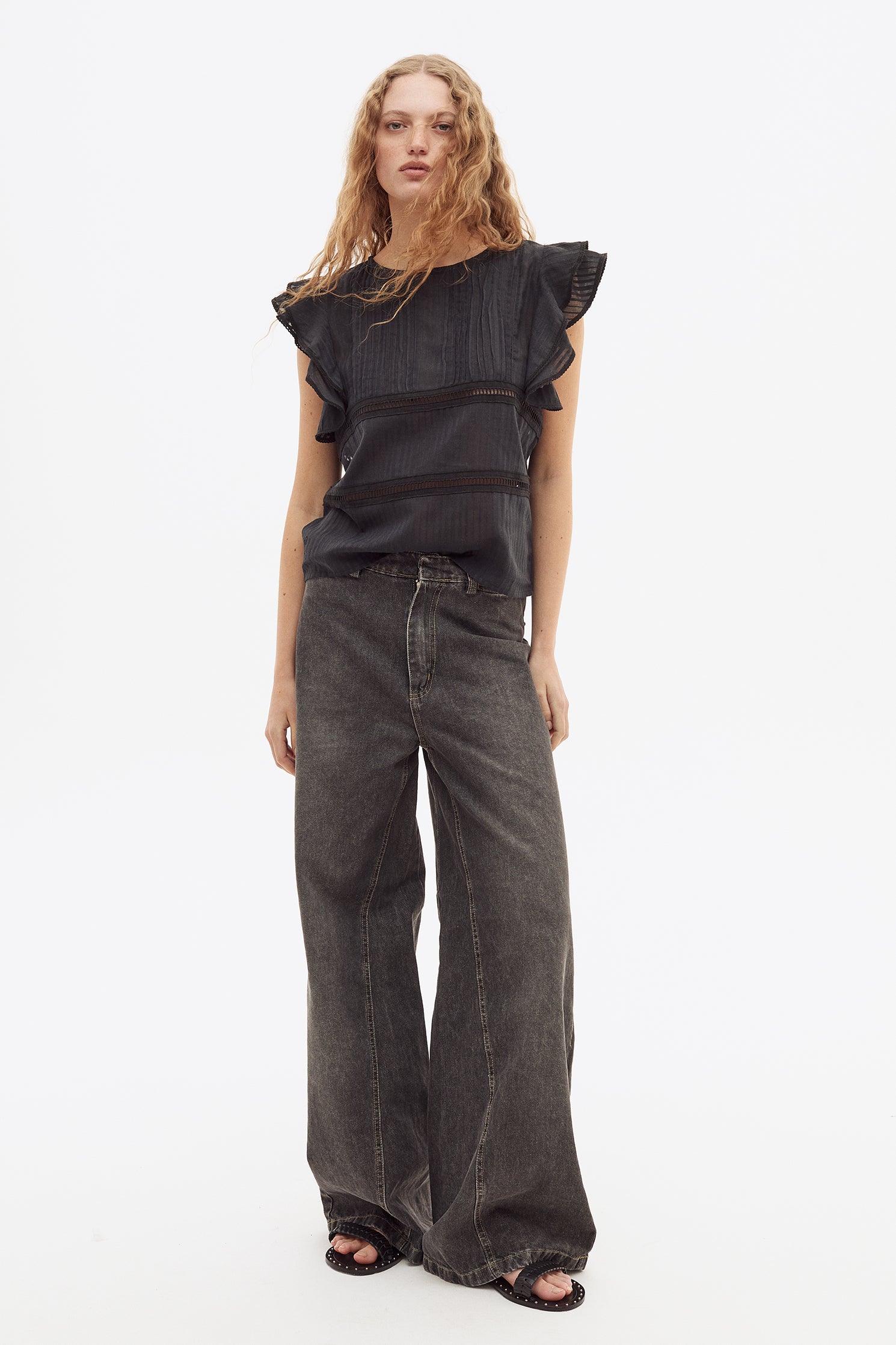 Top de voile rattier de algodón, doble volado en mangas,